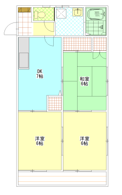 | 間取り | 3DK | 間取り内訳 | DK7帖・洋室6帖・洋室6帖・和室6帖 |